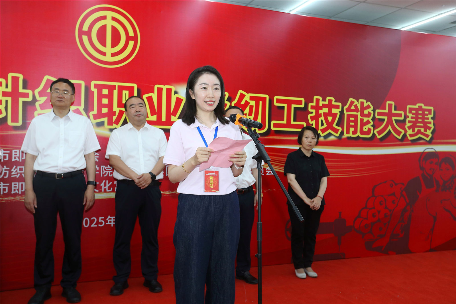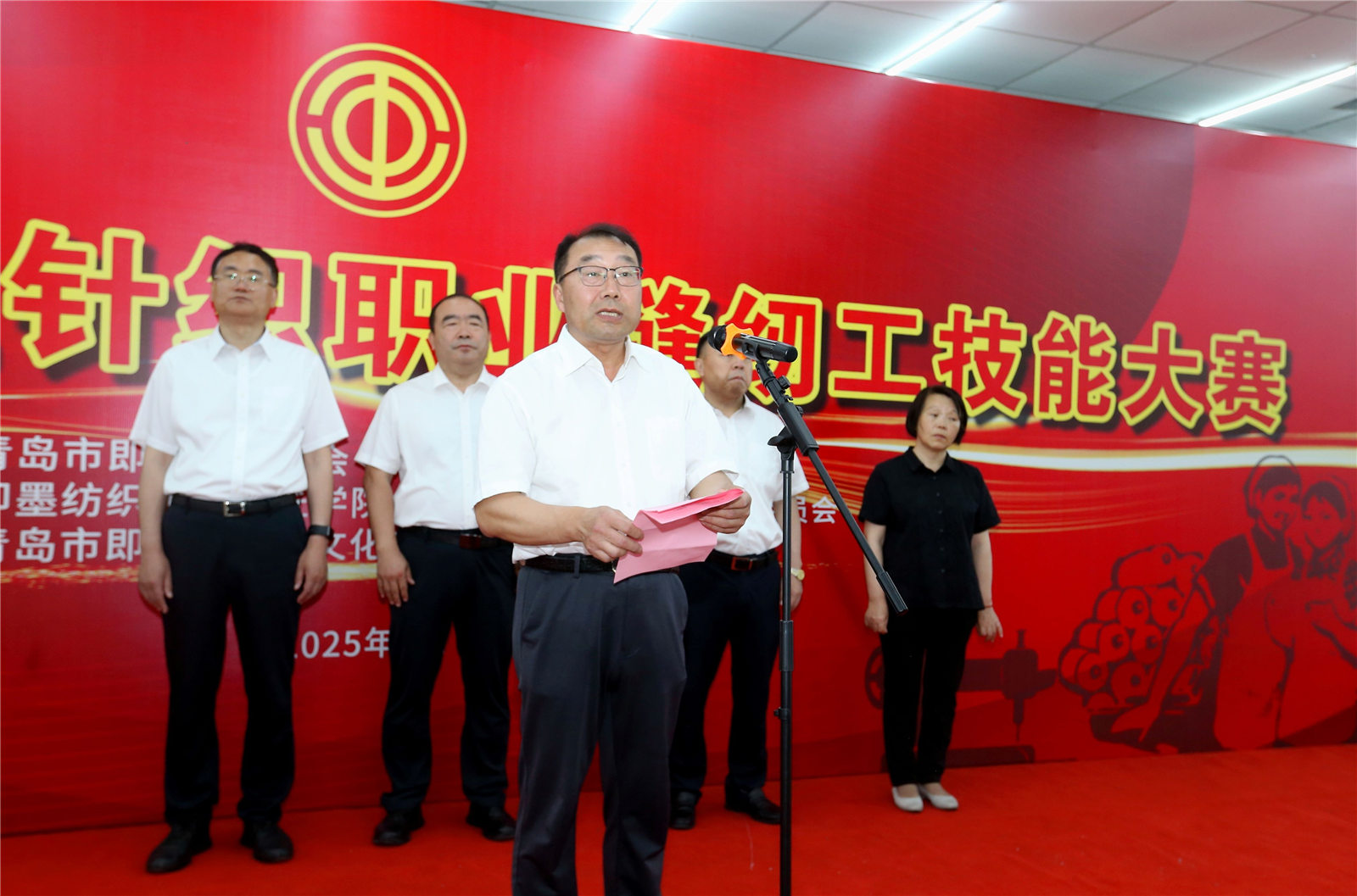 區總工會(huì )二級調研員韓吉明發(fā)表熱情洋溢的致辭,今天我們在這里隆重舉行2025年即墨區針織職業(yè)縫紉工技能大賽。在此,我謹代表即墨區總工會(huì ),向長(cháng)期以來(lái)為即墨紡織服裝產(chǎn)業(yè)發(fā)展辛勤付出的廣大職工致以崇高的敬意!向精心籌備本次大賽的即發(fā)集團以及各位評委和工作人員表示衷心的感謝!